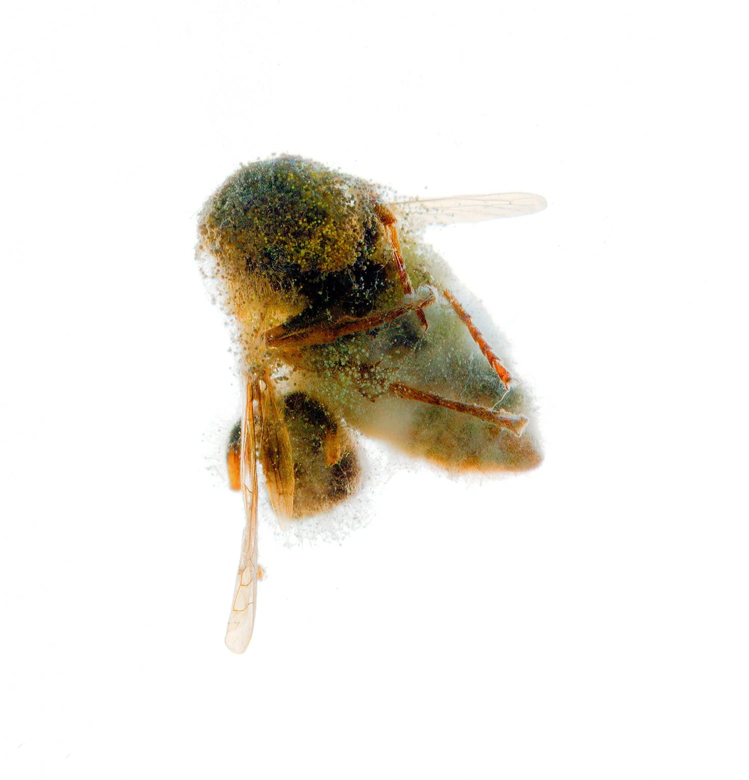 Close-up of a hornet with visible eyes and body segments. The insect's detailed texture and coloration feature prominently. View fullsize